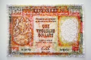 編織鈔票系列是本人懷念香港的黃金時代的一系列作品,包括每日使用的現鈔和國貨公司的手工藝品。我試用手工藝的手法處理鈔票的影像。使作品擁有古物的味道。